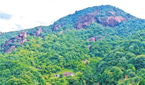 迎面横亘的便是横屏山。它如一道天然屏障,屹立于大埔光德与饶平三饶之间。山巅两块黑色巨石状若展翅雄鹰,仿佛正欲从苍翠林海飞向无垠蓝天,故当地人称之为“鸟子石”。