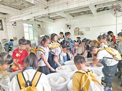首站,小记者来到蕉岭丝苗米省级现代农业产业园,近距离感受科技赋能农业的力量。产业园覆盖示范种植、科研科普、精深加工等全产业链,当看到日处理300吨稻谷的全自动化精制大米生产线仅靠一台电脑控制、无需人工操作时,小记者们纷纷惊叹:“原来大米是这样‘变身’的,农业科技也太神奇了!”