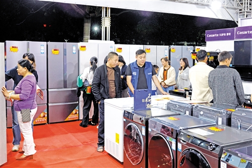 在家电展区,空调、洗衣机、电冰箱等各种商品琳琅满目、应有尽有,前来选购的消费者络绎不绝,呈现出购销两旺的局面。“我们商品齐全,价格亲民。”在梅苑电器展销摊位,负责人陈晓燕正在向顾客介绍优惠商品。她告诉记者,除了“省补”活动外,店里还推出多款实用小家电降价促销活动,尽最大力度让利于消费者,让消费者真正享受到实惠。“大部分家电经过补贴后,都能达到至少百分之十的优惠力度,价格特别实惠。”
