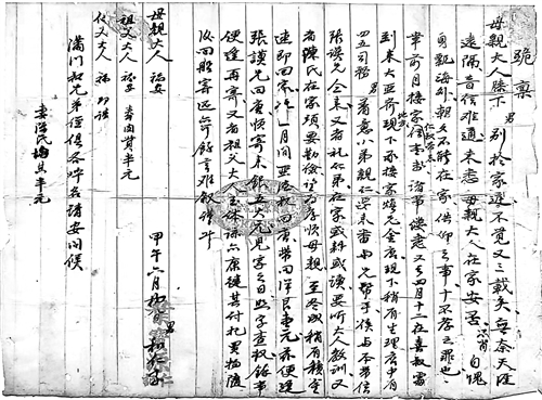 1900年5月13日,叶和仁在批信中提及母亲寿诞,满是“欲归不能”的遗憾与“遥寄祝福”的心意:“现本年三月母亲寿诞,儿兄弟十分喜慰。本欲裁挪,意欲一人回家,奈大家时事不好,不能成就……前今系母亲旦(诞)之期,买多少牲体,叩奉天公庇佑足妥,也请巳(几)位亲人是可。”“意欲回家”却“不能成就”的无奈,“买牲体、请亲人”的叮嘱,把对母亲的祝福落到了实处。
