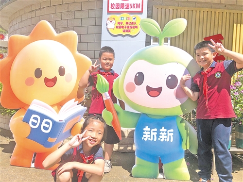 每天进入校园,热情迎接师生们的是两个可爱的吉祥物——“日日”和“新新”。“日日”是温暖的小太阳,手捧手本,博览群书;“新新”是嫩绿的小树苗,手握画笔,描绘蓝图。这充满文化内涵的吉祥物,与学校“知行日新”的学风完美契合,它让整个校园弥漫着浓浓的书香气息。 (作新小学 陈柳)