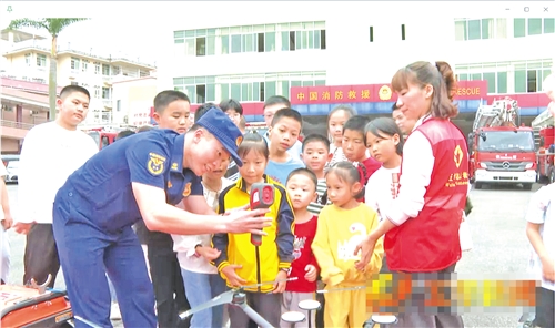 消防员用通俗易懂的语言,向学生们逐一介绍各类消防装备的 “神奇本领”。(华宣)