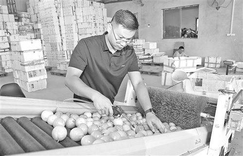 走进蕉岭县广福镇叶田村百香果基地,翠绿的藤蔓肆意伸展,一个个状如鹅蛋的果实垂挂藤间,村民们穿梭在果园中,熟练地摘下泛黄的成熟果实。“今年我们扩种了约80亩百香果,目前全村百香果产业规模已扩至350亩,预计今年总产值将超百万元。”叶田村村委会副主任、百香果种植大户杨诚告诉记者,叶田村主要种植的百香果品种为“钦蜜9号”。该品种甜度高,兼具果皮薄、香气馥郁、汁水丰富等特点,深受消费者青睐。其采摘期较长,可持续至12月中旬,收购价为每斤8元至14元。