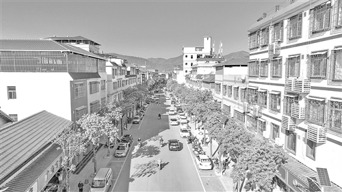 乘着“百千万工程”东风,广福镇加强与中铁广投、驻镇帮镇扶村工作队等帮扶单位的沟通联系,以美丽圩镇“七个一”建设为抓手,持续推进圩镇基础设施建设和人居环境综合整治,抓好205国道沿线农房风貌品质提升,完成广福中心幼儿园窄路拓宽,建设智慧充电停车场,提升改造农房235栋、沿路店招156家,建成“四小园”15处,打造“美丽庭院”42户,乡村实现增颜提质。“圩镇现在真系大变样!”村民黄玉梅指着家门口的沥青路竖起大拇指,“路面整洁又宽阔,送孩子去学校也更安全了。还有新修的凉亭,茶余饭后休闲聊天的人都多了很多。”“统一规划的招牌让整条街都上了档次,自从环境整治后,我这小店客流量也增多了。”店主钟雪芳边整理货架边笑着道。