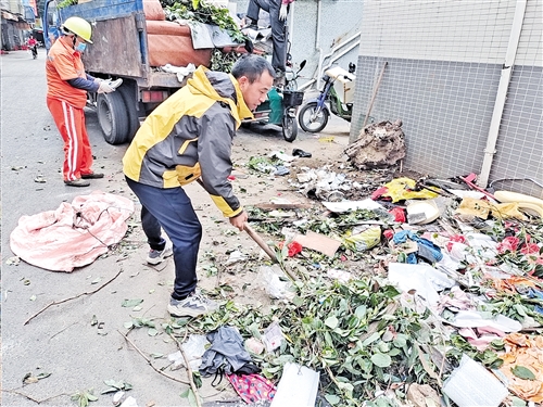 11月18日,梅州市最美退役军人、梅州市环境卫生管理局江南所高级工谭照杰巡检至梅江区三角路中转站时,恰好遇见环卫工人正在清理成堆的垃圾。由于附近正好有人装修,废弃垃圾量较大,当看见情况后,他二话不说拿起工具帮忙一起干。