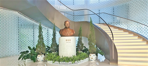 走进曾宪梓事迹展馆,曾宪梓先生铜像静静矗立在大堂中庭。