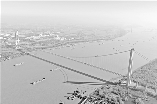 11月26日拍摄的南京新生圩长江大桥(无人机照片)。