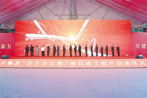仪式上,蒋鲲、王来胜、张清华、刘锐清、韩小林、张志锋、潘长洪、凌望远等领导和嘉宾共同为丰顺县2025年“百千万工程”项目动工投产仪式按下启动键。