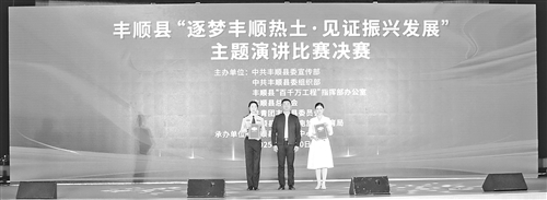 决赛现场氛围热烈而庄重,选手们按照抽签顺序依次登台。有的以基层一线工作者的视角,讲述家乡从“脏乱差”到“美富安”的蝶变历程;有的聚焦县域产业发展,通过对比数据、案例分析,展现丰顺县在特色产业培育、招商引资、项目建设等方面的突破性进展;有的以青年人才的视角,分享自己扎根丰顺、投身“百千万工程”的成长故事,表达对这片热土的深厚情感。他们的演讲或激昂高亢、或深情款款、或朴实真挚,既有对发展成就的自豪赞颂,也有对未来征程的坚定展望,更有扎根基层建功立业的坚定决心。