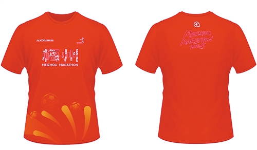 参赛服以热情奔放的“客家红”为主色调,既呼应了客家人对吉祥兴旺的祈愿,也象征着跑者澎湃的热血。点缀其上的“梅花白”则源自梅州市花梅花傲雪凌霜的风骨,寓意跑者坚韧纯洁的品格。衣摆处点缀流线型纹样如同奔跑踏出的足迹,亦如足球之乡梅州在时代画卷上落下浓墨重彩的一笔。