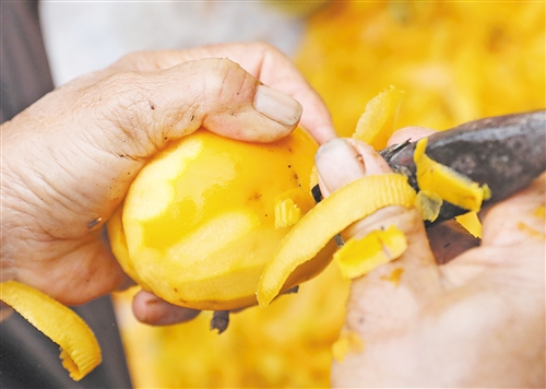 “削皮”是柿花加工第一道工序,需耐心细致。