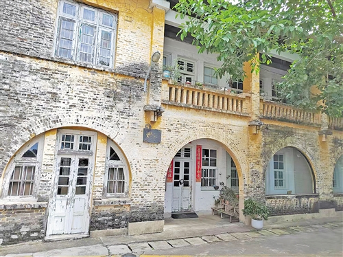 沿着石板路往前走,苏式文化街的黄墙红瓦率先闯进视野。两层砖木小楼带着连续拱券式外廊,坡屋顶的檐口被岁月磨得温润。姐姐伸手抚过廊柱:“这是苏联专家设计的,1953年刚建成时是职工宿舍,后来改成技术部办公楼。你看这个‘Y 字形’外楼梯,是典型的苏式建筑特征,全广州保存这么完好的都没几处。”苏式楼的独特结构与装饰效果高度统一,具有鲜明的时代美学特征,让这里成为深受年轻人喜爱的“打卡点”,不少影视剧也选择在这里拍摄。孩子们蹦跳着跑上楼梯,或坐或站,留下了一张张具有时代感的照片。
