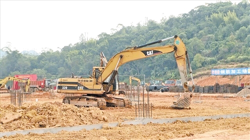 走进项目建设现场,一派热火朝天的景象扑面而来。挖掘机、压路机、起重机等大型机械设备开足马力运转,工人们分工协作、有条不紊地施工作业。