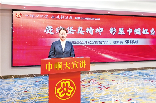 张锦漩参加“巾帼心向党 奋进新征程”梅州市巾帼宣讲活动。(连志城 摄)