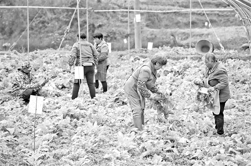12月3日,在重庆市綦江区赶水镇双龙村种植基地,农户采收草蔸萝卜。
