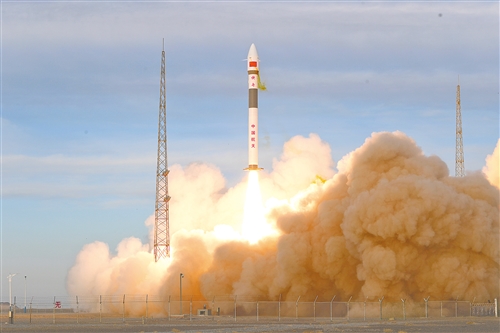 12月5日17时00分,我国在酒泉卫星发射中心使用快舟一号甲运载火箭,成功将交通VDES卫星A星、B星发射升空,卫星顺利进入预定轨道,发射任务获得圆满成功。(新华社发)
