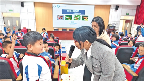 “原来昆虫并不可怕,有些还很可爱呢。”“这场讲座让我了解了什么是益虫什么是害虫,也让我认识了昆虫纲。”“会叫的蝉是公蝉,萤火虫是腹部发光,蝴蝶像一朵‘会飞的花’。”在阵阵欢声笑语里,学生们兴奋地分享学到的知识,收获了与在课堂上不一样的体验与乐趣。