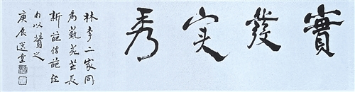 其中饶宗颐先生所写的横批“实发实秀”四个大字引人注目,其落款的小字为“林李二家同为艺苑茁长新葩,借葩经句以赞之。庚辰选堂”。“实发实秀”出自《诗经·大雅·生民》,系记载后稷诞生情况。有意思的是林李两公的姓氏皆有植物之意,以此来称许二家根深叶茂、果实累累,深蕴着饶公的祝贺与期望。