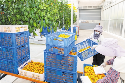 基地兼顾种植彩椒、小青瓜等蔬果,满足人民对高品质食品的多元化需求。(连志城 摄)