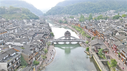 沱江,穿古城而过,水体丰盈,清澈流畅。宽阔江面有虹桥、雪桥、风雨桥,凤凰大桥加持,显得更加沉稳和自信。沱江就像一个千年老者,记录着古城的兴衰与更替,见证凤凰人繁衍生息和血脉传承。古城墙外围,吊脚楼沿江而建,吊脚楼与沱江命运相牵,荣辱与共。有了吊脚楼烟火,沱江才有生命绵延;沱江则为吊脚楼的依附,无私奉献甘甜乳汁,滋养着古城的苗族、土家族、汉族、回族世代,他们和睦相处,携手奋进。