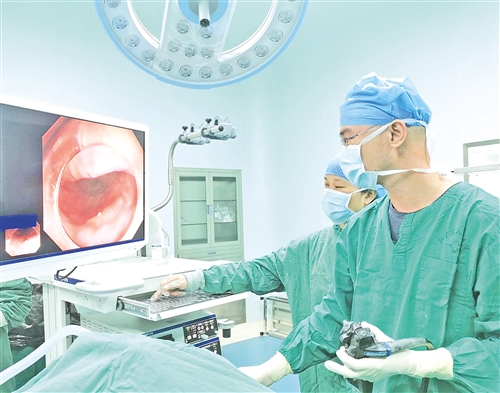 兴宁市人民医院消化内镜中心在为患者施行内镜黏膜下剥离术(ESD)切除病变。(医院供图)