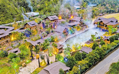 与玖崇湖动物世界有1公里之隔的逍遥谷温泉度假区,入口拱门旁“芯芯”骑着小摩托、拉着小车的雕塑萌趣十足,瞬间抓住了小记者们的目光。走进度假区,小记者们围在温泉池边,伸手触摸温热的泉水,听工作人员介绍这里的温泉水温高达82℃,日流量可达2700立方米,温泉泉质主要为碳酸氢钠泉,俗称“天然小苏打温泉”,是温泉中的极品。东南亚风格的木屋依山而建,木质纹理与自然景致相融,让孩子们忍不住感叹“像走进了童话里的森林小屋”。如今,汤湖、鸭池村立足温泉资源禀赋,将逍遥谷与玖崇湖温泉特色小镇、磐安围古民居等项目串珠成链,打造 “温泉 +康养 +文化”精品路线,让叶塘的自然资源真正转化为旅游优势。