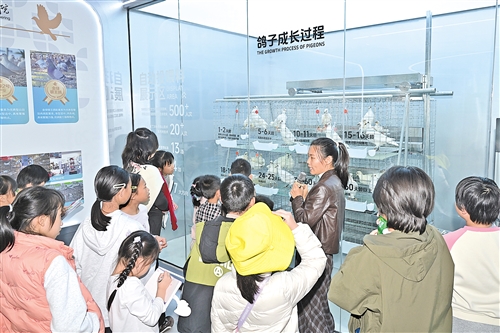 产业振兴是乡村发展的核心动力,兴宁市肉鸽省级现代农业产业园便是叶塘的“致富引擎”。“我国古代四大家禽是哪些?”展厅内,工作人员手持话筒,以趣味问答点燃小记者们的热情。孩子们挤在展示墙前,聆听兴宁鸽近400多年的养殖渊源,观察不同阶段乳鸽的形态,好奇地记录着科技赋能下的品种培育、全产业链布局细节,也读懂了“陈小鸽”品牌从养殖端到消费端的打造故事。更让小记者们惊喜的是,现场还能品尝到鲜醇浓郁的鸽子汤,一口下去,不仅是味蕾的满足,更读懂了特色产业撑起乡村振兴的底气。