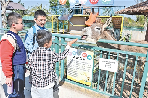 如果说产业是叶塘的“筋骨”,那文旅便是它的“灵魂”。在玖崇湖山水亲子乐园,欢笑声此起彼伏:孩子们用胡萝卜投喂羊驼、山羊;坐上复古的小火车穿梭在园区绿意中;海狮顶球、钻圈的灵巧模样,引得台下小记者们拍着小手欢呼。“早就听说这里超好玩,亲身体验后更觉得不管是小朋友还是大人,都能在这里找到乐趣,应该跟爸爸妈妈一起来!”小记者古蕙敏兴奋地分享着游玩感受。