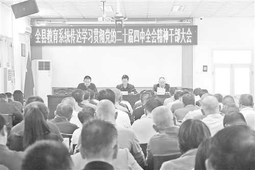 为深入学习贯彻党的二十届四中全会精神,切实把全县教育系统广大党员干部师生的思想和行动统一到党中央决策部署上来,五华县委教育工委聚焦“全覆盖学习、全链条推进、全方位转化”目标,精心组织实施省委教育工委关于党的二十届四中全会精神“六个一百”宣讲行动部署,通过系统统筹、书记领学、形式创新、线上线下融合等举措,推动全会精神在校园落地生根、见行见效。