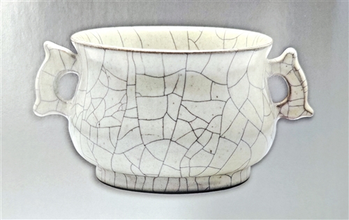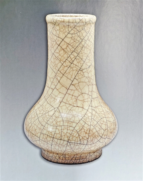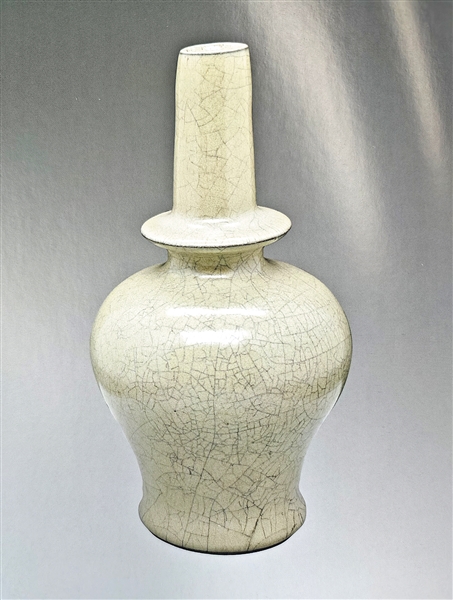 ▲黑紫砂宋式瓶 ▲黑紫砂山子 ▲黑紫砂鱼化龙壶 ▲黑紫砂大石瓢壶 ▲黑紫砂贴金鱼纹潘壶 ▲黑紫砂六方笔筒 ▲黑紫砂玉壶春瓶 ▲米白釉笔架山 高5厘米 宽16.5厘米 ▲米白釉凤尾尊 高16厘米 宽15厘米 ▲米白釉葫芦形水注 高2厘米 宽13厘米 ▲灰黄釉吉字瓶 高24厘米 宽12厘米 ▲黑胎褐釉洗 高8厘米 宽18厘米 ▲米白釉高脚杯及杯承 高10.5厘米 宽13厘米 ▲焦黄釉胆瓶 高15.5厘米 宽7厘米 ▲灰青釉双耳香炉 高6.5厘米 宽12厘米 ▲焦米黄釉净瓶 高14.5厘米 宽7厘米 编者按 沪上陶艺家、紫砂史学者、梅州大埔贤婿袁野先生,潜心探究中国古代黑紫砂与哥窑技艺之遗韵,以学者之思与匠人之手,令沉寂数百年的珍稀釉色与肌理重焕光华。其作品不仅复现了黑紫砂的古朴深邃、哥窑金丝铁线的天成之美,更融入了对工艺演变的独到理解,展现出学术深度与艺术灵性的交融。 本期“文博”版面聚焦袁野先生创作的一批黑紫砂、哥窑器物,展现传统技艺在当代的创造性转化,以期引发读者对传统陶瓷艺术传承与创新的关注。 作者简介 袁野,1971年生于江苏沛县。上海杉达大学艺术设计与传媒学院副教授、中国紫砂史研究学者。 2014 年成功复烧失传黑紫砂工艺。 2017年黑紫砂烧制技艺被收入上海市闵行区非物质文化遗产项目名录,他成为代表性传承人。其黑紫砂作品被中国工艺美术馆、中国国家博物馆、故宫博物院永久收藏。2019年被上海市人民政府授予“上海工匠”荣誉称号。出版专著二十余部。