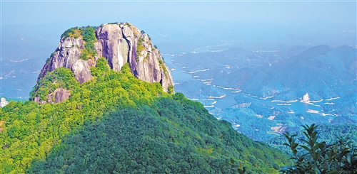 最后探访的是仙人石——一座花岗岩峰上平置一石,远望如仙人凝望湖山,静静守护着下方万顷林涛。我们争相与“仙人”合影,方依依作别。