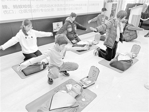 图为孩子们通过参与实操练习掌握急救技巧。(通讯员供图)