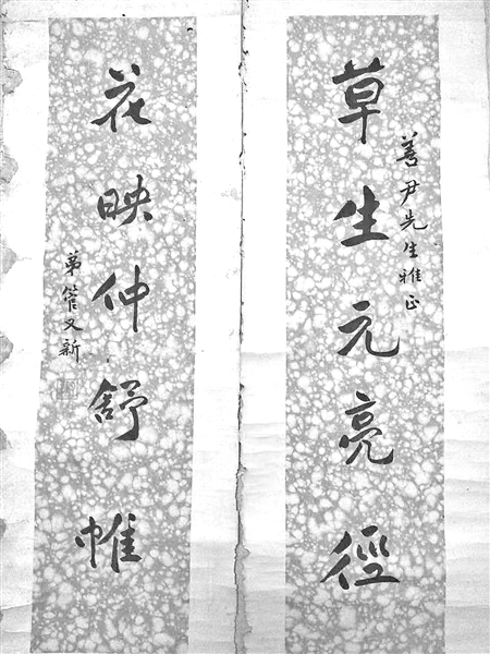 管又新对收藏到的文献没有视为秘籍而不予视人,反而慷慨地提供给有需要的研究学者。学者罗香林在研究兰芳公司及其创始人罗芳伯的历史,管又新获悉后在1934年将在南洋任教时收集到的林凤超《坤甸历史》一书提供给罗香林,这部书中丰富的史料,为罗香林撰写《罗芳伯所建婆罗洲坤甸兰芳大总制考》提供重要依据。王漱薇纂辑《梅联最话》,管又新提供了大量的梅县地方文士的楹联作品,如李悦农(载熙)太仆所集的争坐位字联一帙。另外有其父亲管焕燊及本人自己的作品,包括他的《集陶联》一册。如他的应征梅江桥联在内,题桥柱:“梅邑殷繁,论形胜允推重镇;江流会合,作砥柱喜有长桥。”题丙村某溪桥上公安亭云:“公馀缓步溪桥,快听书声牧笛;安坐放开眼界,饱看云影天光。”他留下的书法作品所见较少,笔者收藏了一副他手书的楹联:“草生元亮径,花映仲舒帷。善尹先生雅正,弟管又新”。