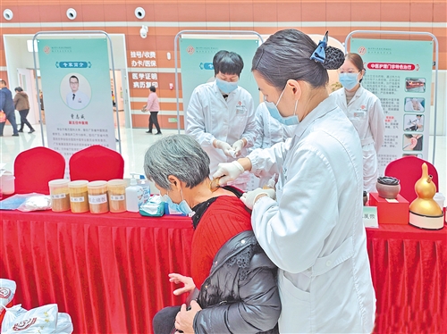 活动现场设有中医专家义诊区、中医技术展示区,由市人民医院中医科专家开展义诊,为市民把脉开方;中医护理人员开展中医特色技术,为群众免费提供头部刮痧、耳穴压豆、穴位贴敷等传统中医疗法服务。此外,还设置了中医药文化展示环节,集中呈现经典膏方和精品药材,让群众零距离接触“本草精华”,并品尝基于“药食同源”理念研制的中药奶茶与养生茶饮,观摩阿胶膏、芝麻丸的熬制过程。
