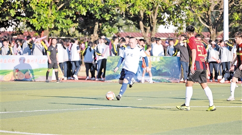 活动现场,李健华、胡志军、李海强等足球名宿现场向当地小球员捐赠足球装备;深圳街超及深圳市卡皮奥实业有限公司向平远县捐赠价值6万元的体育物资,用于支持青少年足球发展。平远县向深圳街超代表团回赠“平远脐橙”,并宣布向深圳游客推出专属旅游优惠。随后,深圳街超明星队与平远足球队的友谊赛打响。比赛过程中,双方球员展现精湛技艺与拼搏精神,赢得现场观众阵阵喝彩(如左图,叶嘉瑶摄)。