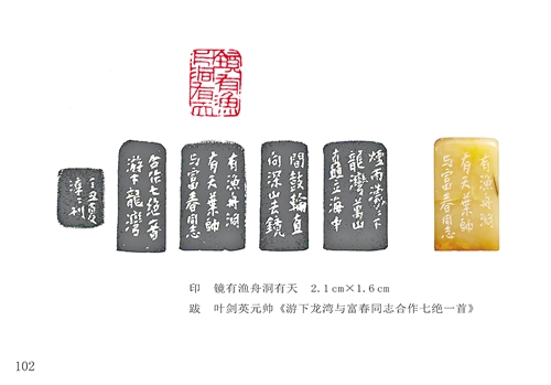其人也,风流倜傥,雅俗温文;诗酒助兴,广结良朋。其书也,融简帛之质拙,纳篆籀之沉雄;笔走龙蛇,惊风雨之态;墨洇烟霞,蔚云汉之章。其印也,承秦汉风骨,得岭南灵秀;刀劈石开,含雷霆之势;朱白相间,藏丘壑之幽。其诗也,清峻隽永,见赤子之心;其画也,简淡空灵,蕴天地之趣;其陶艺也,匠心独运,凝造化之奇。《叶剑英诗词篆刻》,昭元帅之风范;《野风堂诗稿印跋》,展文人之雅韵;《门外野风开白莲》,集四绝之大成。噫嘻乎!高怀映月,艺名播于粤海;清韵临风,德望重于儒林。