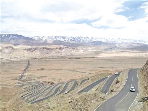 随后,我们前往盘龙古道。这条位于塔县瓦恰乡的盘山公路,是乡民通往县城的“致富路”。它蜿蜒于昆仑山脉,全程竟有600多个S弯,海拔约4100米,远望如巨龙盘卧山间,守护着西部神山。因路途险峻且易引起高反,多数游客只走一半便原路返回。我们却决定全程体验。车行迂回曲折,大家不免提心吊胆,幸而司机技术娴熟、经验丰富,才稍感安心。行至海拔约4500米的半山腰,道路右上方有一大片未融积雪,我们临时起意停车玩雪。可没走几步,我和女儿便感到寒冷刺骨、呼吸艰难——典型的高原反应,只好作罢返回。几位体质较好的同伴却尽兴赏雪、拍照,还登上一处山顶,远眺高原苍茫奇景。