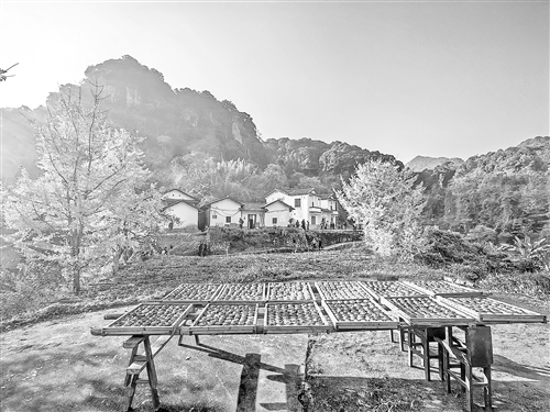 正沉醉间,柴火味从旁边民居一侧丝丝缕缕地飘了过来,寻味而去,正是那熟悉的人间烟火味,阿姨们正忙着烧火做饭、蒸菜,忙得不亦乐乎。异于草木清甜的、温暾的香气,丝丝缕缕地飘了过来。才见几间黛瓦白墙的民居,门口悬挂的竹竿上,还晾着一串串腊肠、一条条腊肉。肉是肥瘦相间的,酱色油亮,肥的部分几乎透明,瘦的则深红紧实,油脂的醇香与山野的清香,便也一丝丝地散在空气里了。
