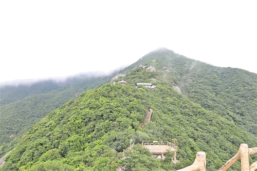 参观完后,我们在工作人员的陪同下,坐上观光电车和缆车,登上半山腰后,沿着登山台阶,一步一步艰难地向山峰攀登。终于,经过一番努力,大家攀爬上了飞云顶山峰。工作人员介绍说,罗浮山拥有山峰432座,其中海拔1000米以上山峰80多座,主峰飞云顶海拔1296米。飞瀑名泉980多处,洞天奇景18处,石室幽岩72个,拥有泉、池、涧、瀑、林、洞、观、寺、塔、峰等景观。
