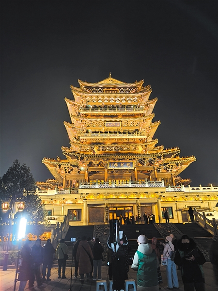 我立于高处,被这“呼彻九霄”般的光明所包围,心中澎湃,难以自已。这已不仅仅是一个网红景观,它让我想起了作家金焘纯对北京城中鼓楼昔日更鼓的描述:“待至壶水一尽,双铙立时击响不爽毫厘……鼓楼每‘击鼓一通,声闻遐迩’。”古代的鼓声,以声音统一着时间的步调,凝聚着城市的作息;今日的亮灯,则以光明的仪式,标记着夜晚的降临,凝聚着无数陌生人的共同感动与审美共鸣。从“声闻遐迩”到“光动全城”,变迁的是媒介,不变的,是地标建筑对一座城集体情感与集体时刻的塑造力。这束光,照亮的不只是楼阁,更是游子心中对“盛大”与“共同”的渴望。
