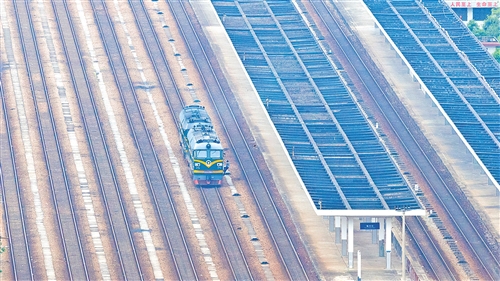 ▲铁轨如琴弦般静卧,在站台间裁剪出平行的光带,一路铺向远方。