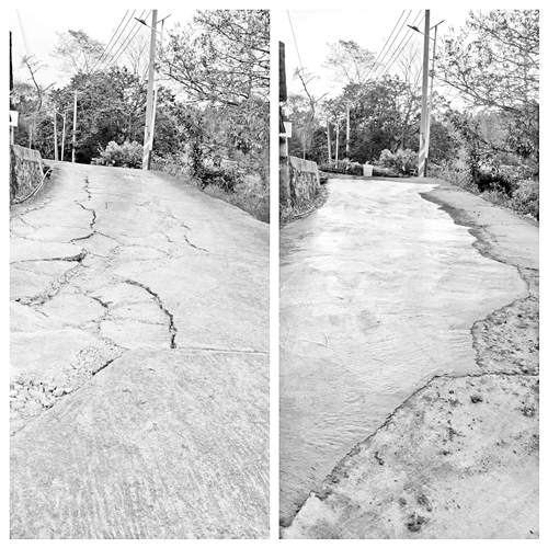 俄湖村道路修复前后对比。(受访者供图)