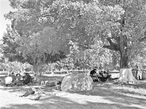 扎紧帐篷,铺好防潮垫,放好东西,就开始生火。可是要生火的时候,发现生不着了——酒精没有带。于是,只好等着快递送来。