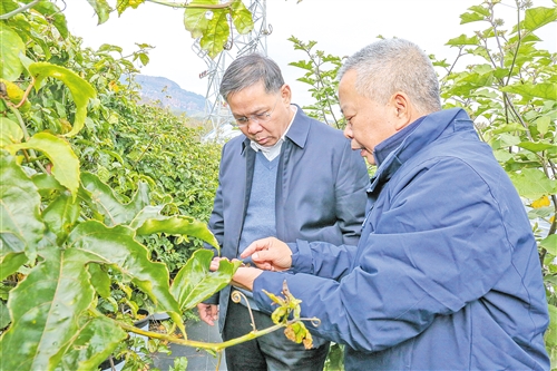 除蓝莓外,工作队还推动超南村、墩背村连片种植百香果近百亩。“2025年3月,我们超南村、墩背村百香果基地种下首批果苗,且邀请了省农科院、华南农业大学等科研院所专家开设了4期‘乡村工匠’和百香果绿色种植技术培训班。”杨国亨介绍。工作队锁定“短平快、带动强”的特色果业并创新推出“工作队搭台+村集体牵头+合作社运营+村民参与”的四方联动发展模式,2025年百香果亩产达到3000斤,全年果园创收近150万元,村集体收入近90万元,带动农民就业近4000人次,人均务工收入约3万元,该项目被南方产业智库等评为2025年度十佳项目。