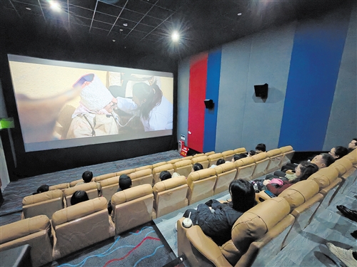 媒体工作者观看影片《遥远的普若岗日》。(李盛华 摄)