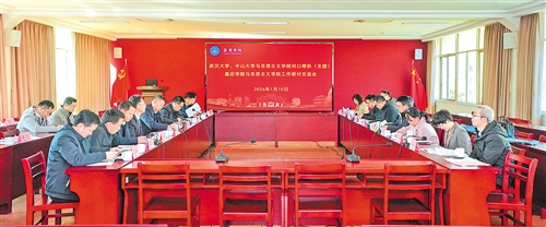 交流环节中,武汉大学、中山大学、嘉应学院马克思主义学院分别详细介绍了各自学院办学定位、学科优势、师资队伍建设及发展经验。随后,三方围绕《对口帮扶工作机制及2026—2028年工作任务清单(讨论稿)》《“党的创新理论与地方实践”学术研讨会筹备方案(讨论稿)》展开深度研讨。
