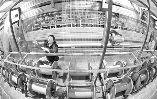 1月27日,江苏连云港高新区海州工业园一家企业生产车间,工人赶制一批订单网具。