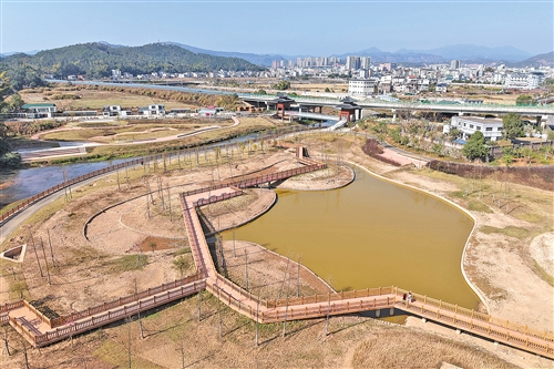 平远水门山湿地公园构筑了一个生态净化系统,并拥有开阔的湿地景观。
