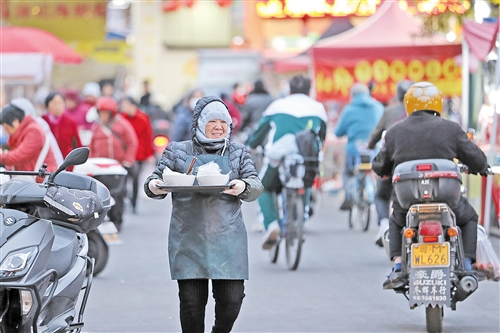 天刚亮,幽暗的街道上,环卫工人握着扫帚的身影缓缓移动,橘红色的工作服成了这片幽暗里最醒目的色彩。 早晨六点多,街角的包子铺已热闹起来。 冬日清晨,初升暖阳放射金光,划破晨雾,照耀在一群热舞的人身上,暖意融融。 冬日里的菜市场依旧熙熙攘攘,刺骨的寒意挡不住市民挑选新鲜食材的脚步。 早餐店里,店家忙不过来,外卖小哥自己动手打包好要派送的早餐。 菜市场里,早餐店老板娘为早早出摊的摊贩送上热气腾腾的早餐,忙得不亦乐乎。 学校旁的路口,早早挤满了裹得严严实实的送学家长。 天刚蒙蒙亮,市场边的煎饼摊已支了起来,穿着背心的小哥忙碌着,显得格外惹眼。 ●图/高讯 文/梁松春 冬日清晨,寒意裹着薄雾漫过梅城街巷。凛冽寒风中,各类人群坚守岗位,各赴忙碌。他们在晨光中的身影,藏着生活的不易,也包含着细碎的暖意。环卫工人顶着寒风清扫街巷,舞者踏着晨光舒展身姿,渔人驾舟于江面劳作,快递小哥骑车匆匆奔忙。煎饼摊与包子铺的烟火升腾,驱散了寒意。从街边小摊到静谧江面,有忙碌侧影,有温情相伴。不同的忙碌身影,在清冷晨色中勾勒出鲜活图景。平凡的坚守里,烟火气与人情味相融,虽有寒风凛冽,却因这份温暖,让冬日清晨满是生机。