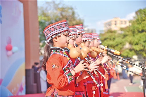 新兴小学葫芦丝团队参加元旦文艺汇演。(受访者供图)